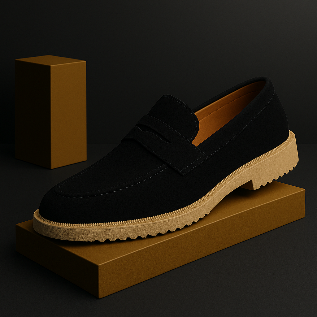 Men’s Black Suede Penny Loafers with White Sole – Classic Slip-On Dress & Casual Shoes